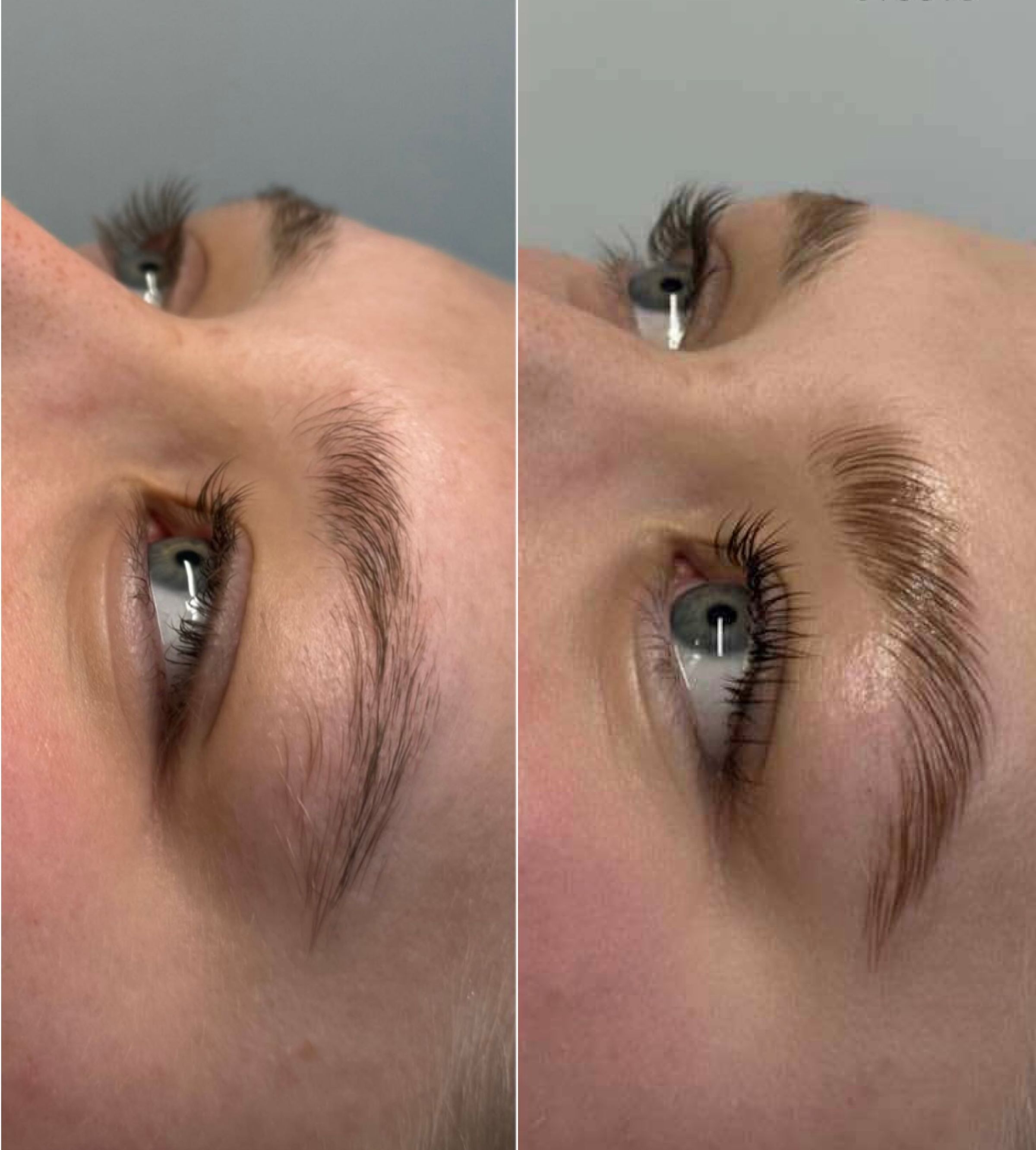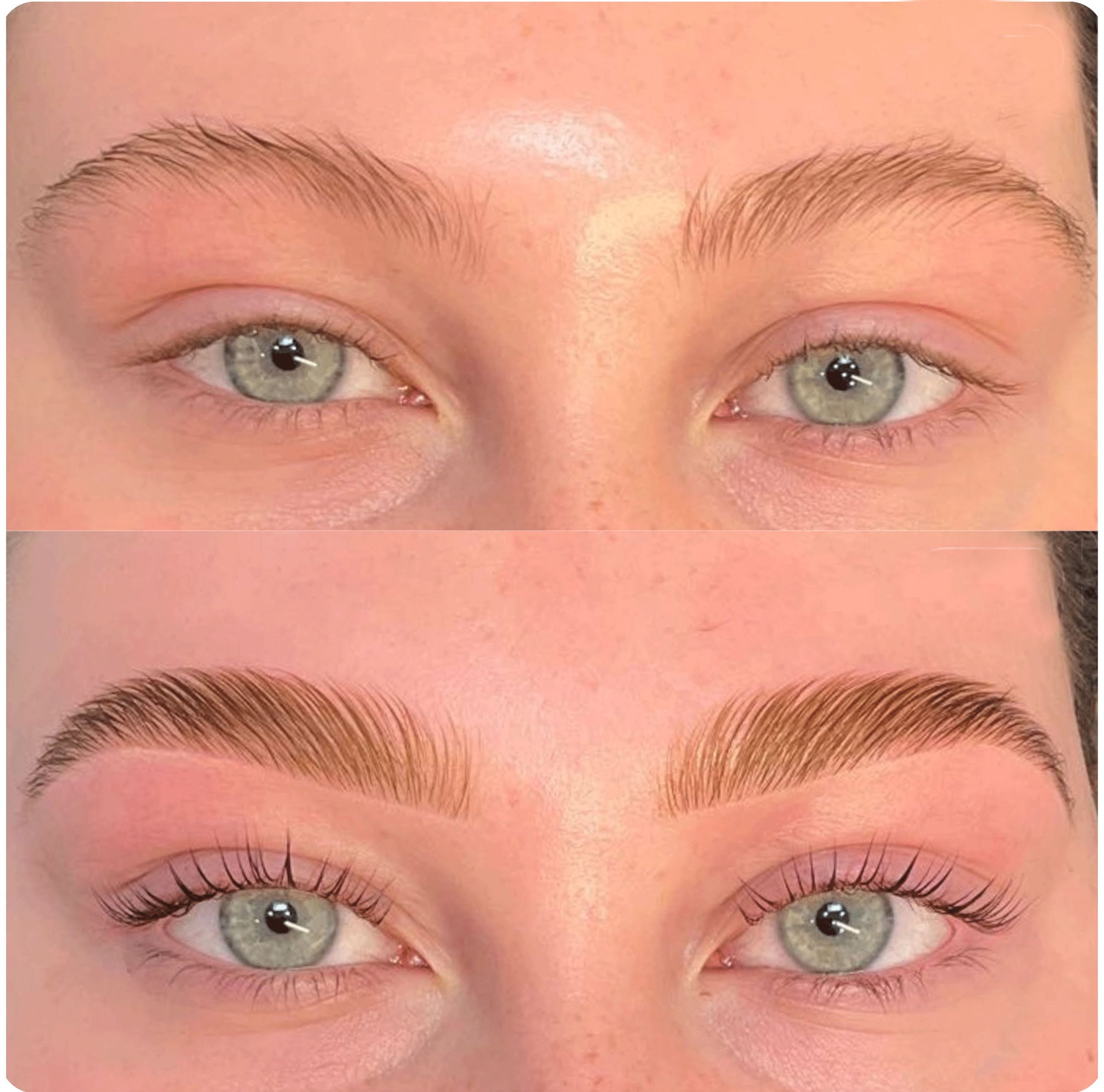 Brow Lamination er en permingbehandling, der omstrukturerer hårene, hvilket skaber et fyldigt og veldefineret look. Behandlingen giver langvarig form og retter ujævne bryn, hvilket resulterer i en mere symmetrisk finish.